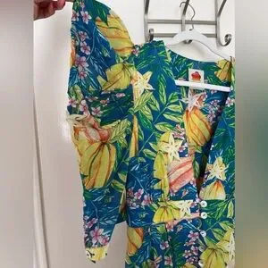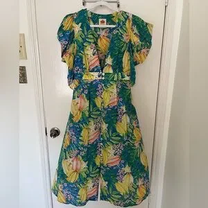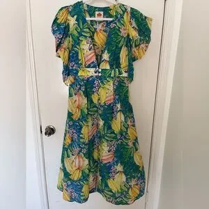 Farm Rio Midi Dress Star Fruit print w Puff Sleeves. Size Medium.