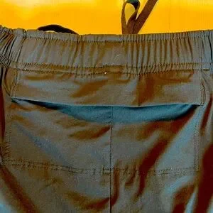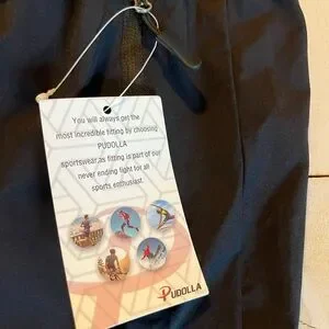 This is a pair of Pudolla men's NWT black track pants. These pants are perfect for any outdoor or sports activity, such as walking, cross-training, basketball, hiking, or running and jogging. The lightweight and blended fabric of nylon and spandex provide comfort and easy care, while the adjustable waist and elastic waistband ensure a perfect fit. There are zippered pockets on the side as well as a pocket near the waist on the back.