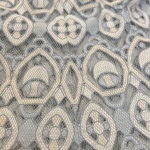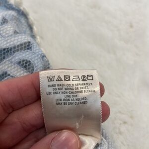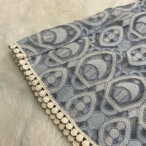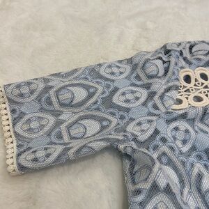 HD in Paris an Anthropology brand. Blue and cream lace shirt with peplum and short sleeves. Size 6.