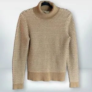 J. Crew Turtleneck Textured Tan and White Long Sleeve Sweater, size S