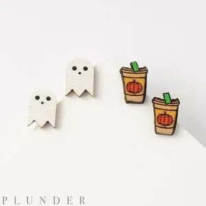 SET OF WOOD STUDS SHAPED AS GHOSTS AND PUMPKIN SPICE LATTES. 🧡