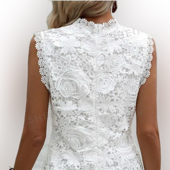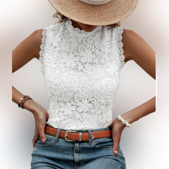 Lace crochet blouse sleeveless top white lined wedding shirt T 4 boho bohemian
