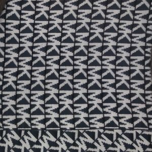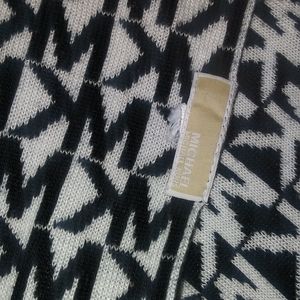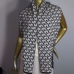 Absolutely beautiful and warm MK monogrammed scarf. Two sides one is scarf white and MK is black pic # 6, the other is vise versa with black scarf and MK in white, pic # 1. Care and material tag was cut. Michael Kors tag still attached pic # 6.