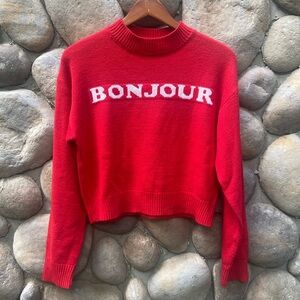 FOREVER 21 Red/ White Bonjour Cropped Long Sleeve Sweater