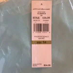 Alfred dunner size 14 NEW WITH TAG classic fit pale green two pockets