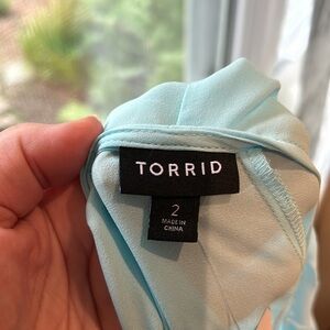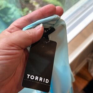 I would describe the color as robin's egg or Tiffany blue. Torrid's color is Atomizer