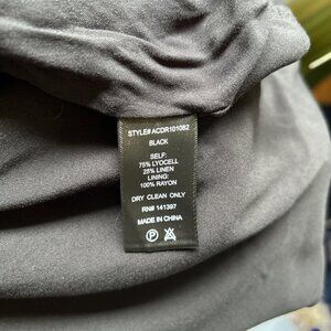 This stunning black dress from ASTR is perfect for any occasion. The dress features a flattering V-neckline, short puff sleeves, and a zip closure. The ruffle, cut-out, strap, and zipper accents add a touch of elegance to the dress. The dress is made of a combination of linen and lyocell, which makes it comfortable and easy to care for. The dress is a size L and has a solid pattern. The dress is suitable for summer and spring seasons. The dress has a long length, which makes it perfect for any formal or casual event.