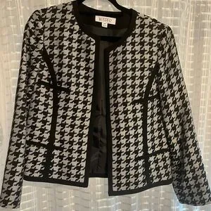 Kasper Houndstooth Steel Grey and Black Suit Jacket Blazer