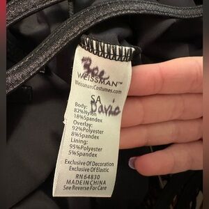 Weissman brand flapper-style dance costume. Sequins underneath strings. Snap back. Size adult small. Worn for tap routine.
