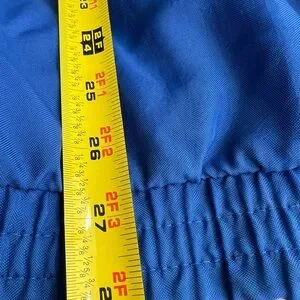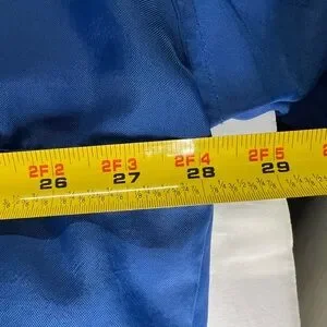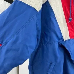 The starter zipper pull will need put back on. The side zipper is missing some of the teeth and won’t zip all the way down. Elastic on the sleeves is worn.