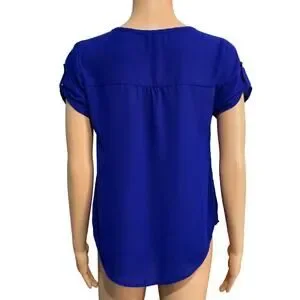 MINE Blue Roll Tab Blouse Size Small Pit to pit 18" Length 24"