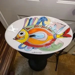 Check out this beautiful La Musa Ceramic Hand Painted Fish Platter. It has a Nordstrom made in Italy foil sticker on the bottom. 11 1/2"×17 1/4" approximately. It has firing imperfections and wear. Please examine photos carefully to determine condition issues. Make an offer. You deserve this.
