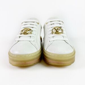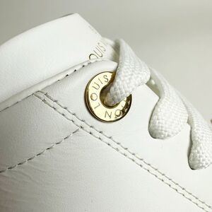 LOUIS VUITTON White Time Out Sneakers Size 39 US 8.5 Leather Lace Up Pink Shoes LV Logo Loafer Shoe Low Top