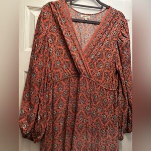 Max Studio Dusty Pink Floral Midi Dress With Faux Wrap Bodice