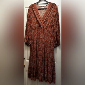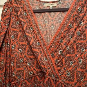Max Studio Dusty Pink Floral Midi Dress Size S With Faux Wrap Bodice NWT