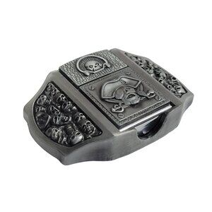Antique Silver Finish Metal Pirate Skulls Lighter Belt Buckle -