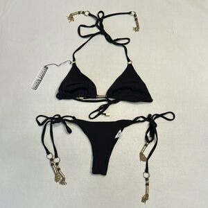 NWT Paul & Rade Black Bikini with Gold Tassels
