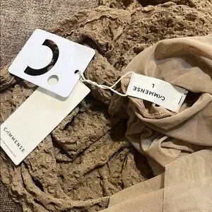 NWT Light Tan Textured Asymmetric Ruffled Midi Dress by Commense