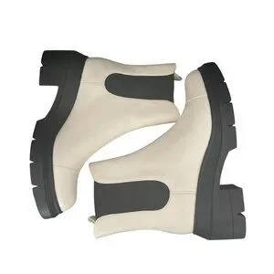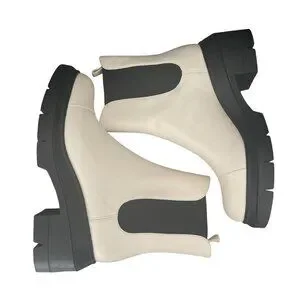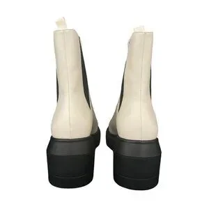 Stuart Weitzman Norah Chelsea Cream Leather Platform Boots, Size 10C WORN ONCE