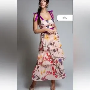 L’Atiste Tiered Dress. Into the Garden Maxi. Purple adjustable tie straps. Perfect pre owned condition. Size large.