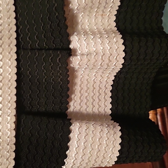 Black and white peplum top.