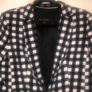 Banana Republic Black White Navy Plaid Gingham Blazer sz 8 single button close