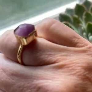 Reposhing this ring from @clubgemstone. I don’t have much information as it was included in a bundle of rings. Shiny gold with a purple stone. Size 7 (see pic). Not worn other than posting these pictures. It’s beautiful.