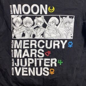 Sailor Moon Small Black White Logo Tee Moon Mercury Mars Jupiter Venus