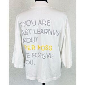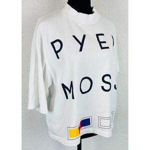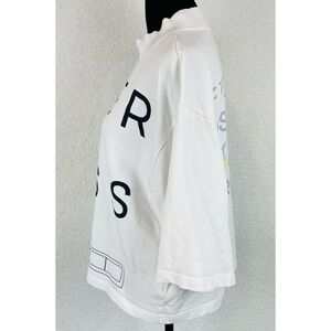PYER MOSS • White “We Forgive You” Short Sleeve Mockneck Logo Tee, M