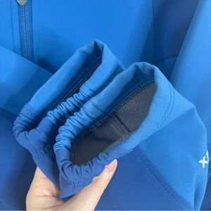 Apex soft shell jacket with fleece lining and full zip front.