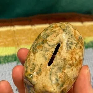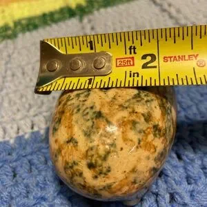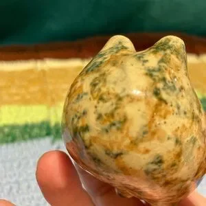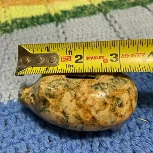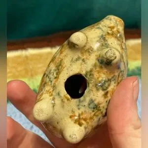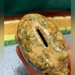 Appears handmade. The cute round shape and brown crackled coloring makes this little big look like a potato!