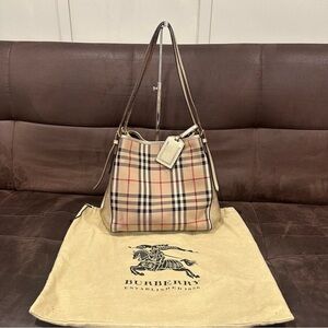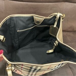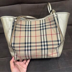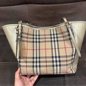 💯 Authentic RARE Burberry Canterbury Horseferry Check Tote Gold Purse Handbag