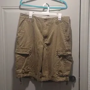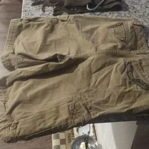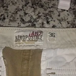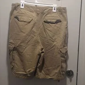 men's size 36 Aeropostale khaki tan cargo shorts with 6 pockets and sinch strings on bottom of shorts. good used condition.