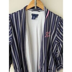 Vintage RALPH LAUREN Women Robe XS/S Blue Striped Terry Lining Embroidered Logo