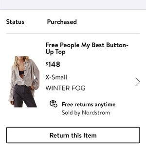 Free People My Best Top Button-Up Top Sz XS - Runs Big Winter Fog - NWOT