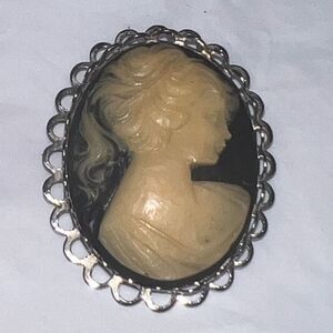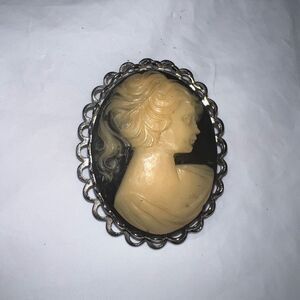 Vintage Stunning Carved Black and Cream Large Cameo Brooch