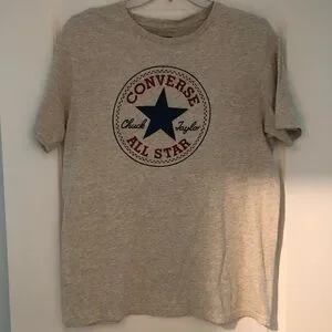 Grey-ish tee with blue and red All stars Chuck Taylor logo. In excellent condition. Smoke free dog friendly home. Cross posted.