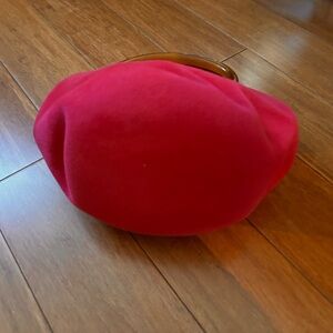 Highly collectible vintage 1950s fuschia felt purse with Bakelite handle.