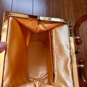 For the upcoming party season, a glamours hot pink felt bag with fuschia handle, perfect for the glamour girl. The purse is very clean inside. Some wear near the handle but overall good condition.