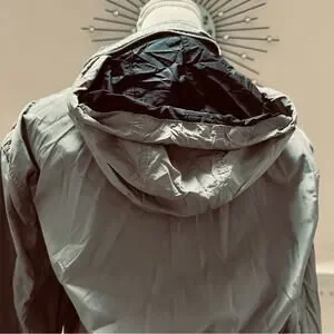 @makreusser It does have a drawstring, you can't see it because it's at the very base of the hood, hidden inside the pouch. Thanks for shopping my closet.