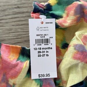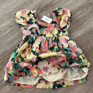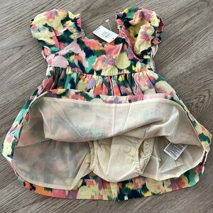 NWT Baby Gap Girls 12-18 Month Watercolor Floral Linen Blend Dress Set