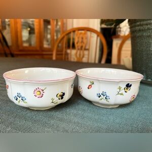 TWO (2) Villeroy & Boch Petite Fleur 4.5" Porcelain Berry Fruit Cereal Dessert Bowls. Excellent pre owned condition. Approx. 4.5" W x 2.25" H. Crafted In France / Luxembourg / Germany. Dishwasher and Microwave Safe.
