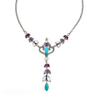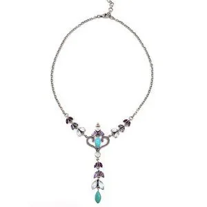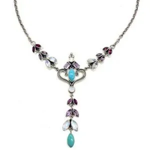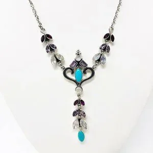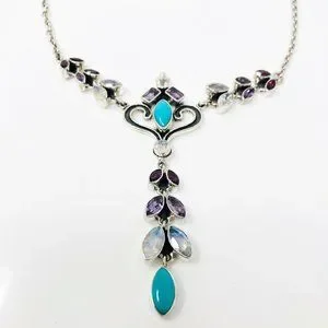 Multi Gemstone Nicky Butler Turquoise Amethyst Moonstone Marquise Drop S/S 17" Necklace