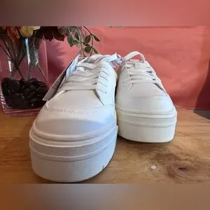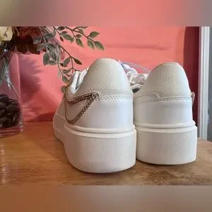 BERKSHA casual all white shoes with a gold chain size 7.5 women’s NWT