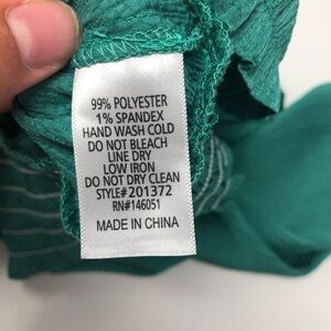 Monteau Los Angeles Green Blouse Faux Wrap Elastic Waist Size Large