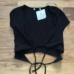 NWT Black Ribbed Crop Top with Ties