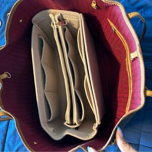 AUTHENTIC LOUIS VUITTON • Large Neverfull Tote & Pochette, Patina Monogram Bag • Used • Good Condition • Lots Life Left • Some Water Marks inside Bottom of Bag • TLC • Very Spacious • an Additional Pochette Bag w/ Large Pocket, Can be used as Wristlet • Also a Large Organizer w/ lots of Pockets, 13 Compartments • Travel/Diaper Bag/ Etc • Great Bag • Can be a Gift • Red interior • 2 Small Scratches/Worn on Bottom Corner of Bag, See Pics •
