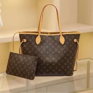 AUTHENTIC LOUIS VUITTON • Large Neverfull Tote & Pochette Patina Monogram Bag •
