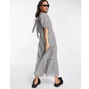 MNG by Mango Gingham Back Tie Dress - Size 2
