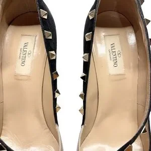 Condition is pre owned. Comes with box and dust bag. Valentino's trademark rockstuds spike the curving, wraparound strap of a pointy-toe d'Orsay pump, elevated with a slender, stiletto heel.